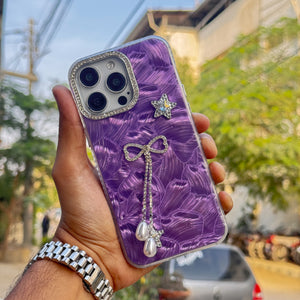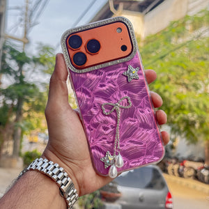 Luxury Diamond Border Foil Case with Bow & Chain